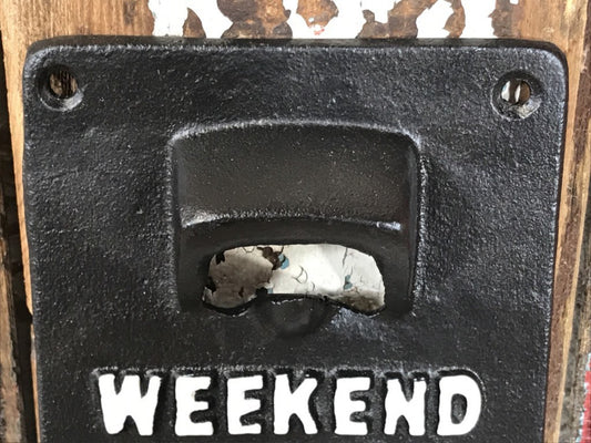 WEEKEND FORECAST 100% CHANCE OF BEER, Wall Bottle Opener Cast Iron