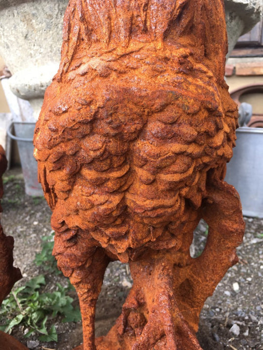 Life Size Cast Iron Rusty Cockerel Rooster Chicken Bird Statue