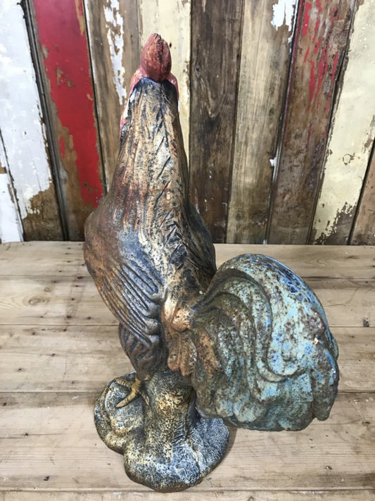 Weathered Heavy Cast Iron Hand Painted Cockerel Chicken Bird Garden