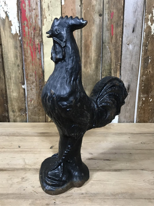 Black Heavy Cast Iron Hand Painted Cockerel Chicken Bird Garden