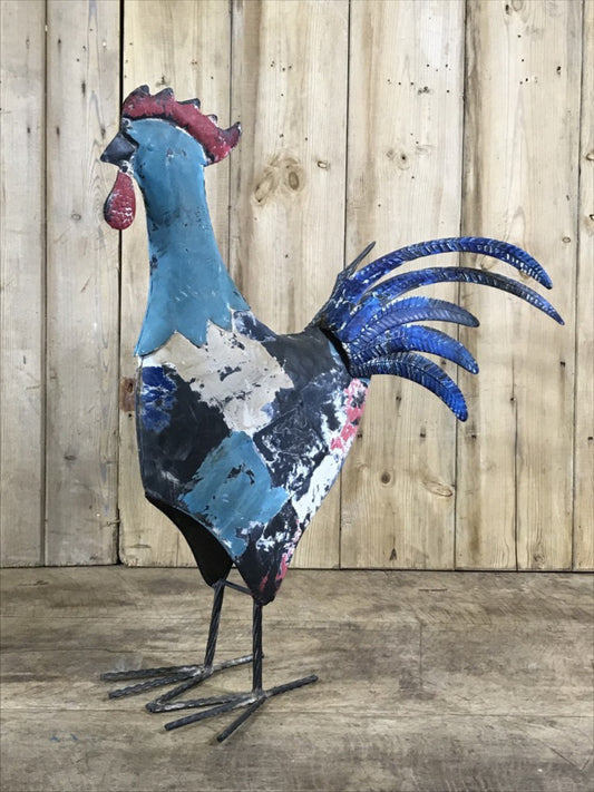 Currently Out of StockRustic Hand Painted Metal Tin Standing Cockerel Chicken Bird Figure