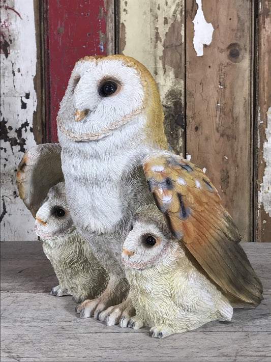 Lovely Resin Detailed Owl Family Ornament Fantastic Realistic Detail & Colour