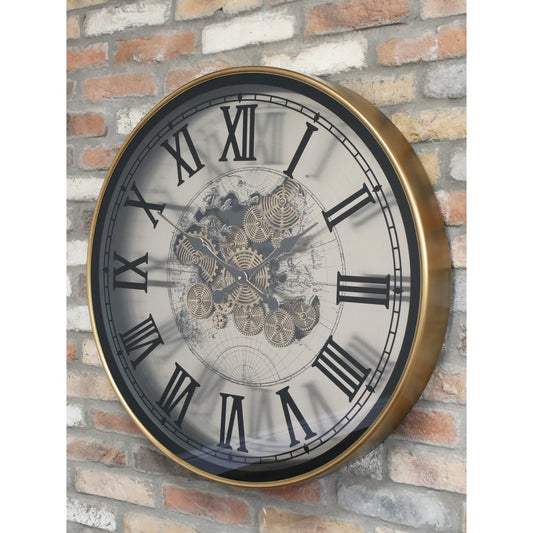 Large 80cm Diameter Wall Hanging Clock Roman Numerals & Moving Cogs