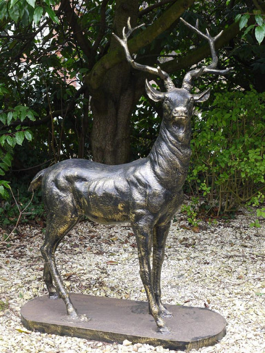 Heavy Cast Iron Large Standing Stag Buck Deer Figure In Bronze Finish