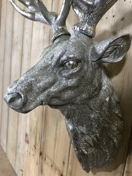 Life Like Antique Silver Stags Head With Antlers Wall Hung Deer Buck