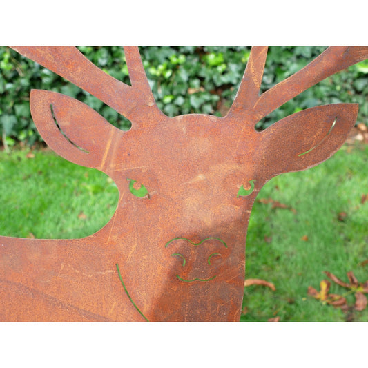 Large Rusty Deer Stag Silhouette Freestanding Garden Animal Metal 4'3"H 4'5" W