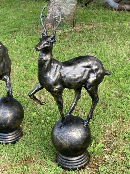 Currently Out of StockBronzed Cast Iron Pair of Small Stags On a Ball Sphere Garden Or Gateway