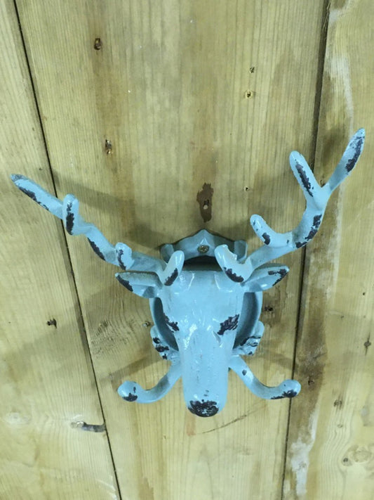 Currently Out of StockDouble Pale Green Cast Iron Stag Head With Antlers Coat Hook