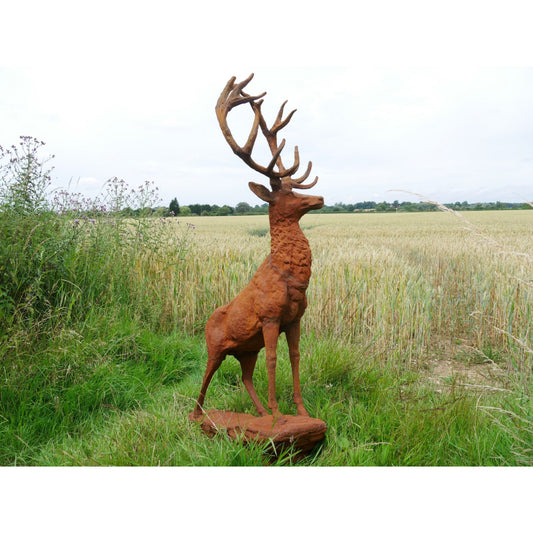 Heavy Cast Iron Rusted Standing Stag Buck Wild Deer Animal Statue 5'2"H 1'9"W