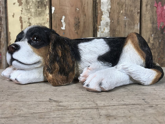 Painted Black,White,Tan King Charles Dog Bowl with 1 Stainless steel Bowl