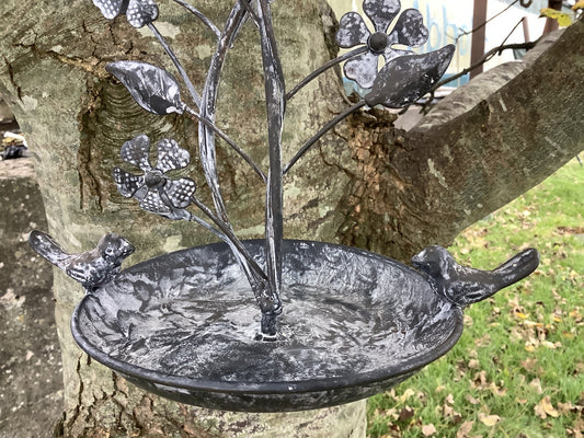Lightweight Whitewashed Steel Freestanding Or Hanging Bird Feeder/Bath