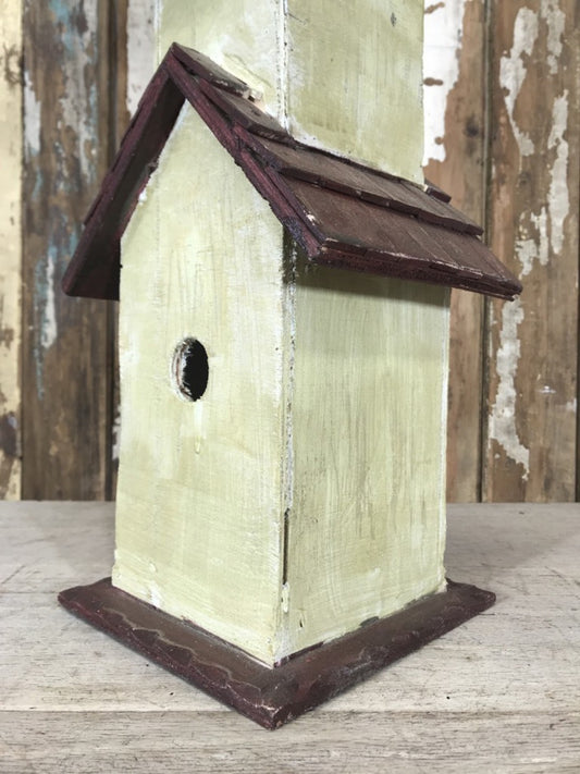 Rustic Painted Wooden Timber 4 Story Bird House Garden Ornament 80cm Tall