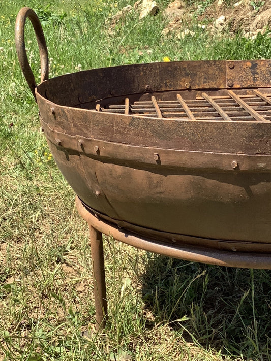 Large 24" / 60cm Round Wrought Iron Garden Outside Camping Fire Pit Grill