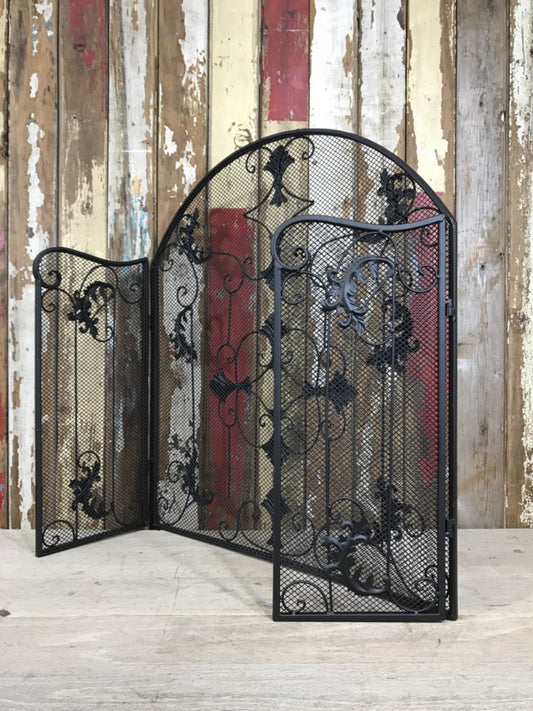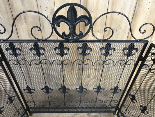 Black Wrought Iron Fleir De Lys Style Metal Folding Fire Stove Screen Guard