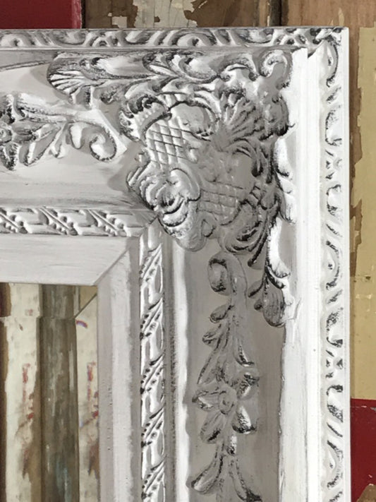 32"x52" Square Bevelled Shabby Chic White/ Grey 2ND