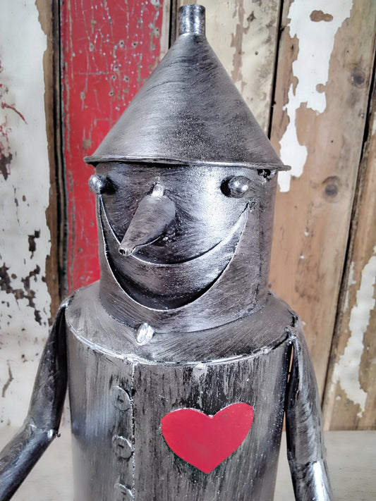 16" Small Tin Man Statue With A Red Metal Heart & Axe Fantastic Garden Ornament