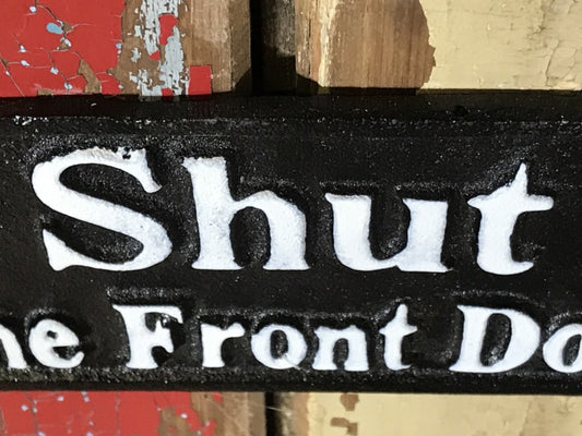 Shut The Front Door Metal Black & White Wall Sign New Cast Iron