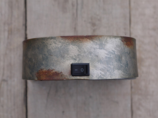 Industrial Style Pipe Double Low Level Lighting Battery Light On Wooden Plinth