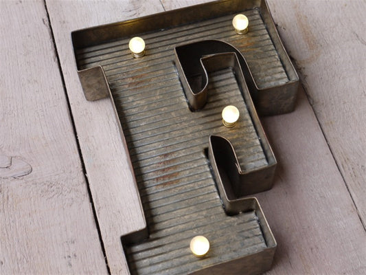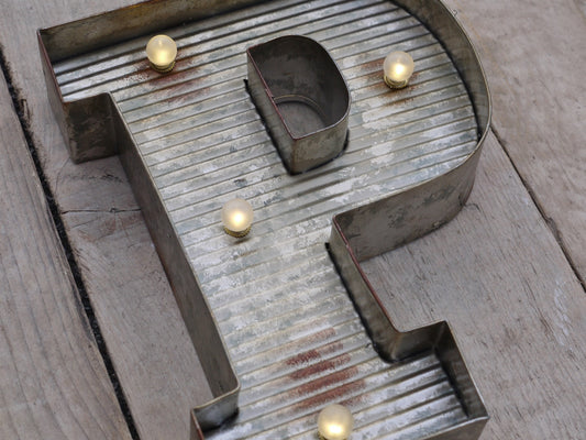 F Illuminated LED Galvanized Style Tin Metal Fairground Style 10" Letter