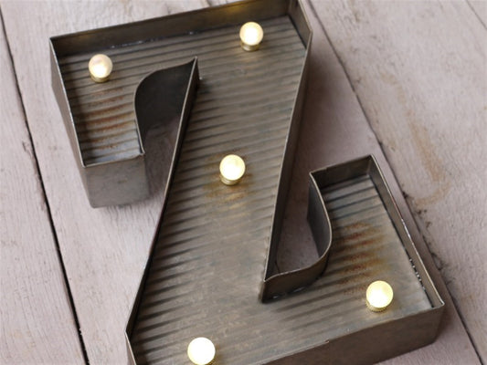 Z Illuminated LED Galvanized Style Tin Metal Fairground Style 10" Letter