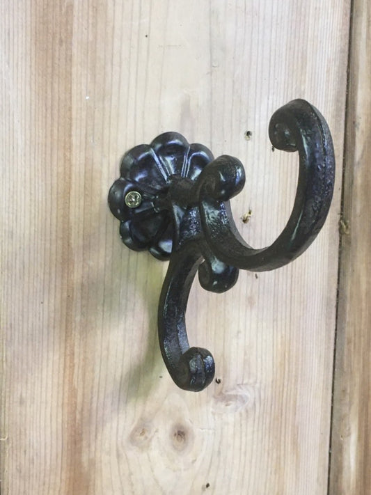 Double Cast Iron Coat Hook With Rosette Back Black