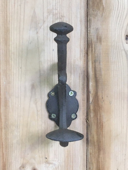 Victorian Style Cast Iron Hat & Coat Double Hook Black