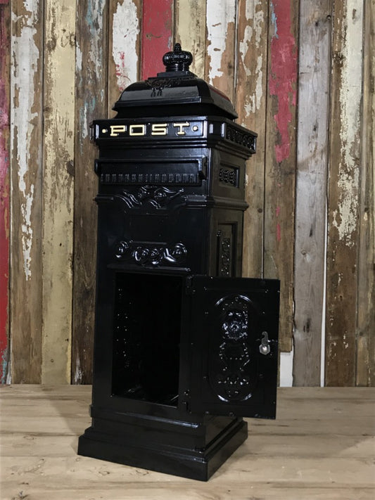 Black Cast Aluminium Tall Pillar Mailbox Post Letter Box Small Parcel