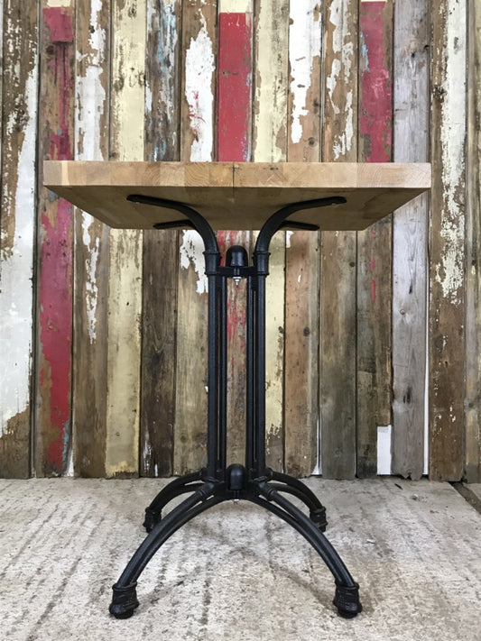 Currently Out of StockSolid Oak Table Top With Black Cast Iron Base 30 1/4" High
