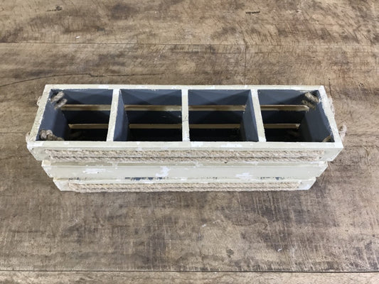Shabby Chic Rustic Painted 4 Wine Drinks Bottle Holder Grate Rope Handle