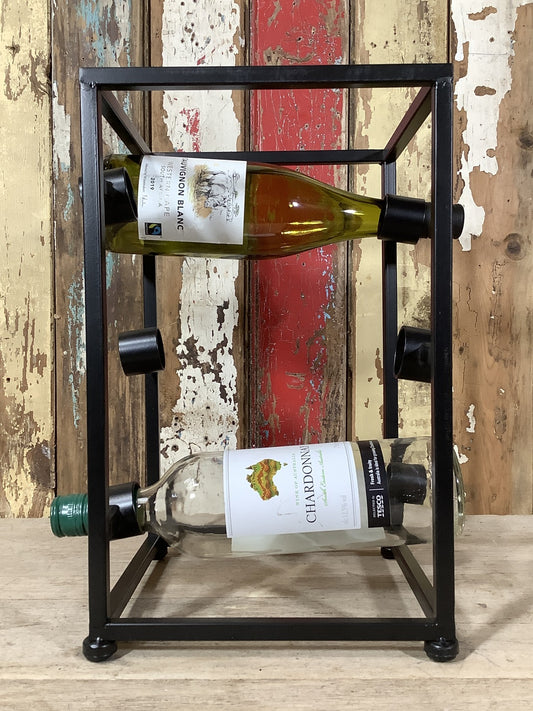 6 Wine Bottle Holder Black Steel Industrial Style 14.5 Tall