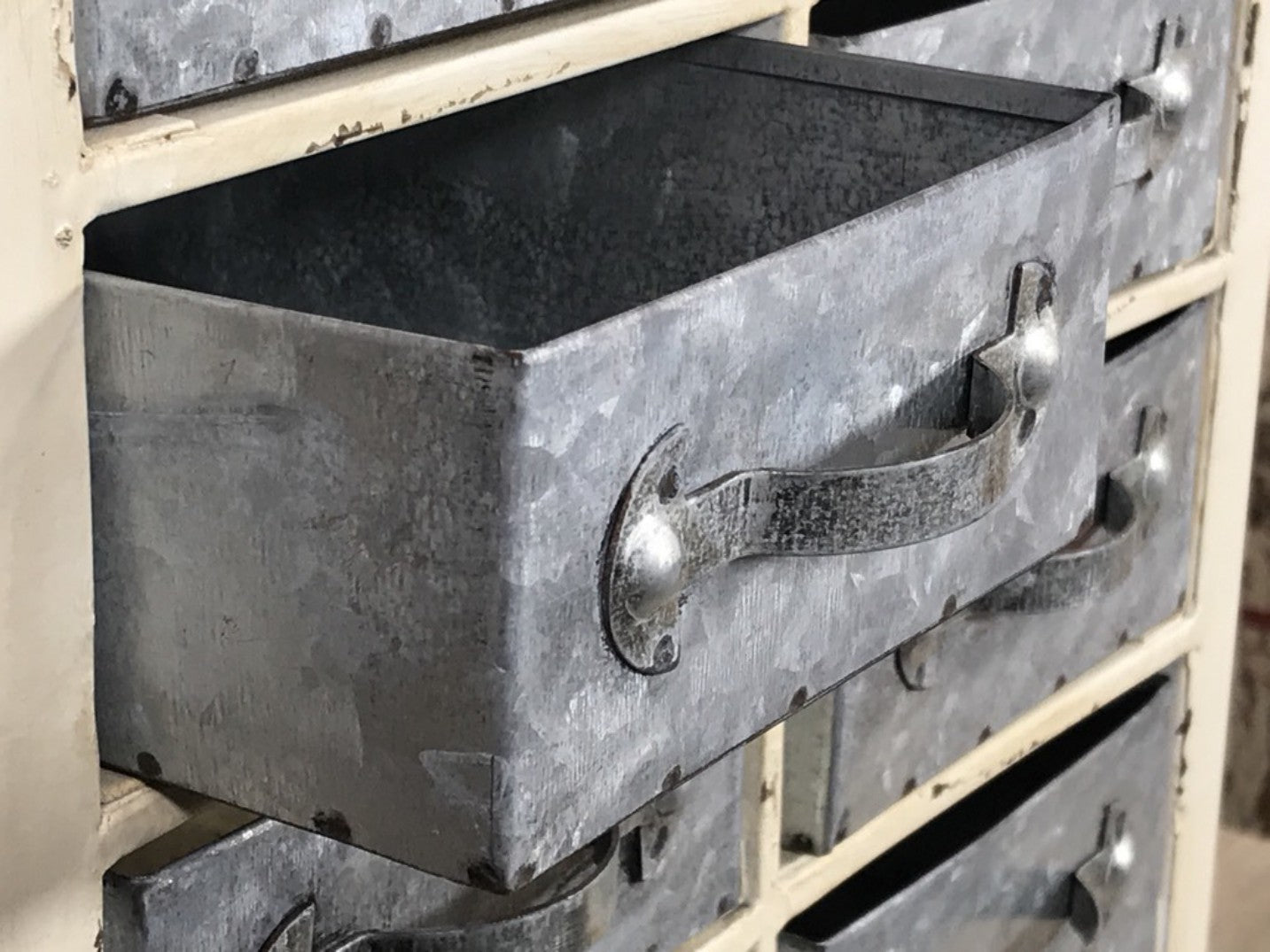Industrial Free Standing 2' Distressed Metal Chest Of 14 Drawers Useful Cream
