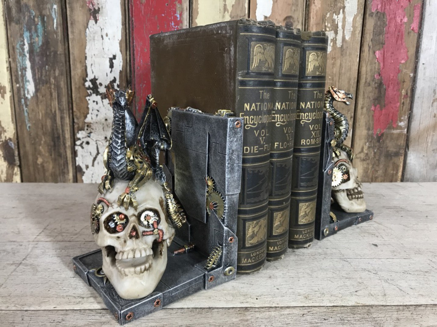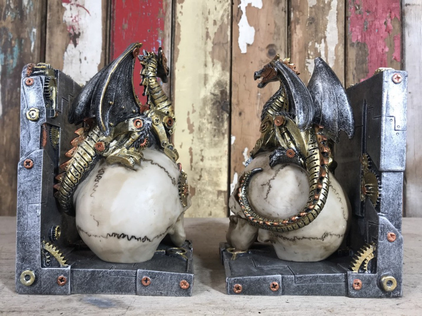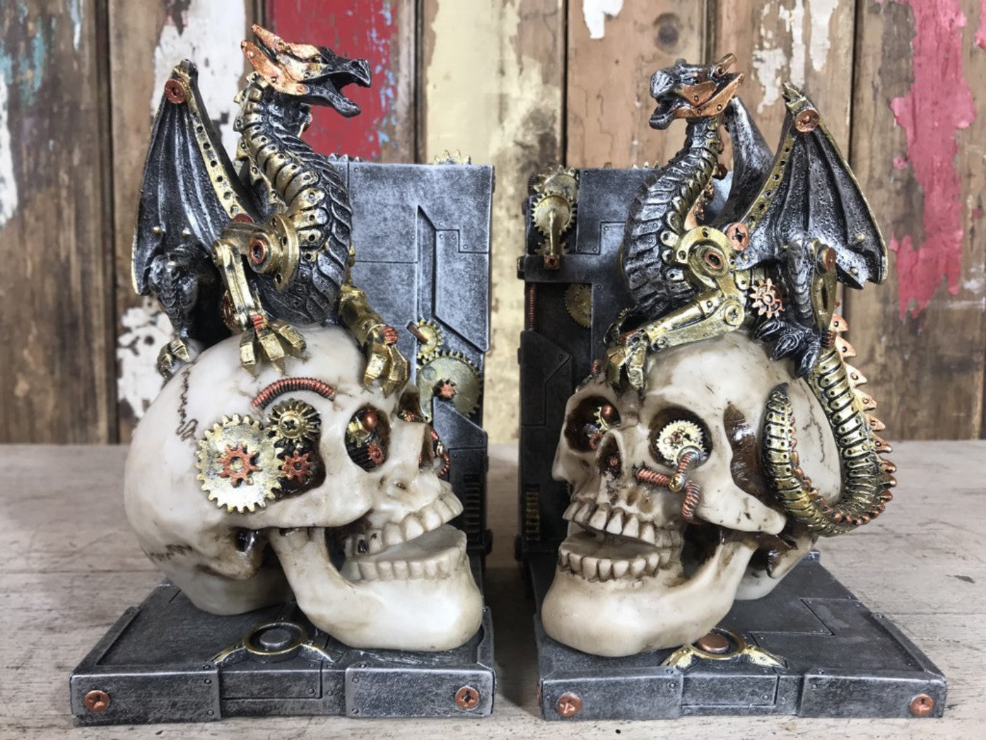 Steampunk Skulls With Dragons Bookends Fantastic Amazing Detail Quirky Bookends