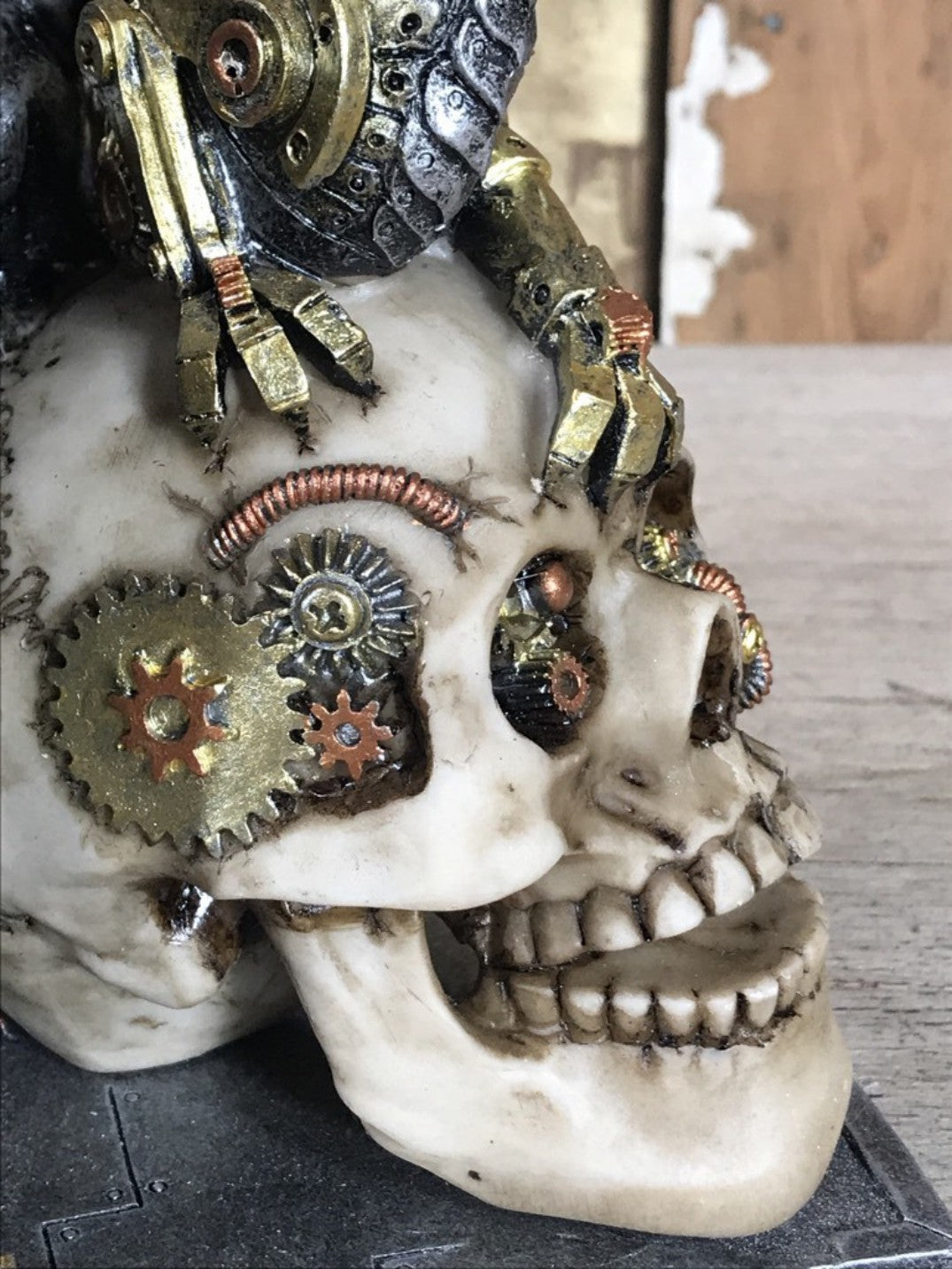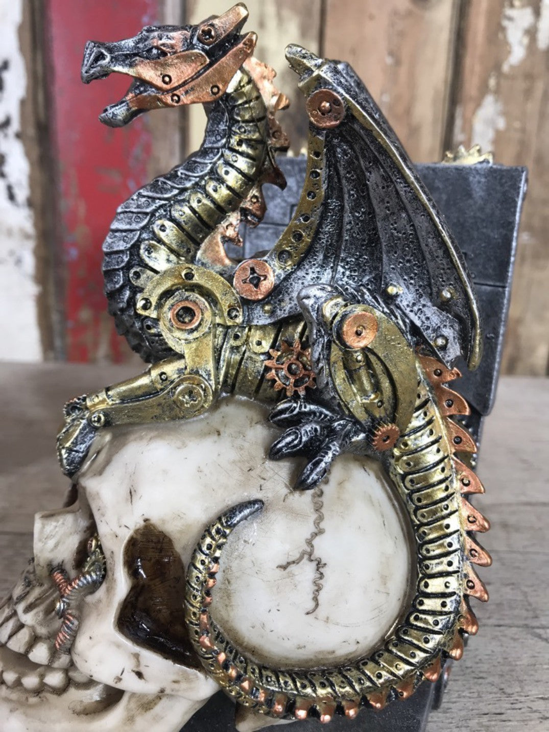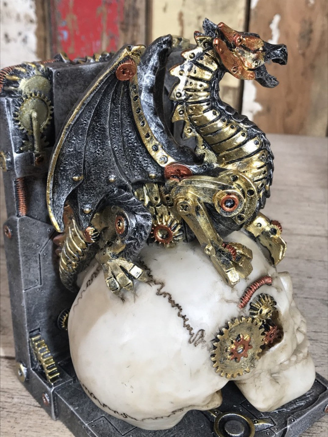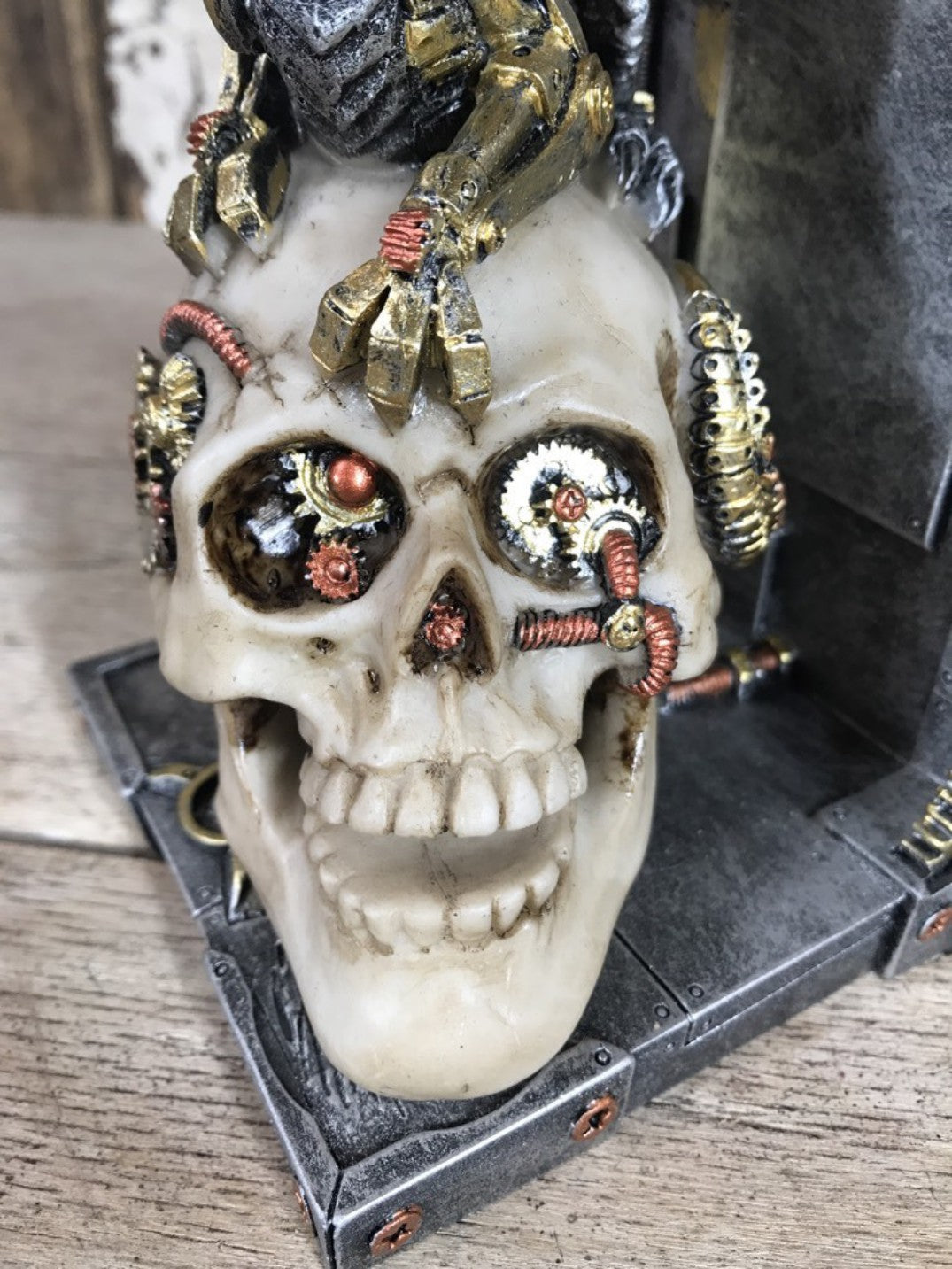 Steampunk Skulls With Dragons Bookends Fantastic Amazing Detail Quirky Bookends